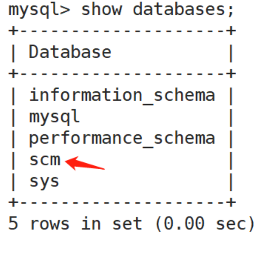 bin/mysql -uroot -p < /opt/scm.sql