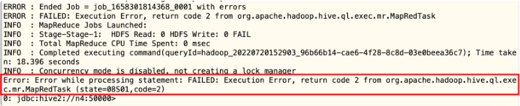 Error: Error while processing statement: FAILED: Execution Error, return code 2 from org.apache.hadoop.hive.ql.exec.mr.MapRedTask (state=08S01,code=2)MR任务报错