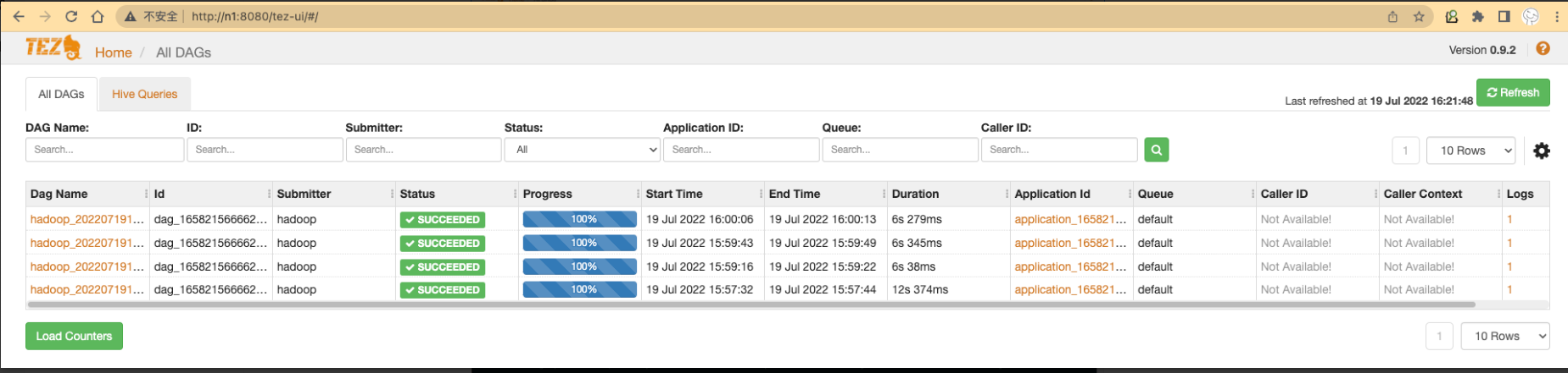 执行hive查询,访问ui地址