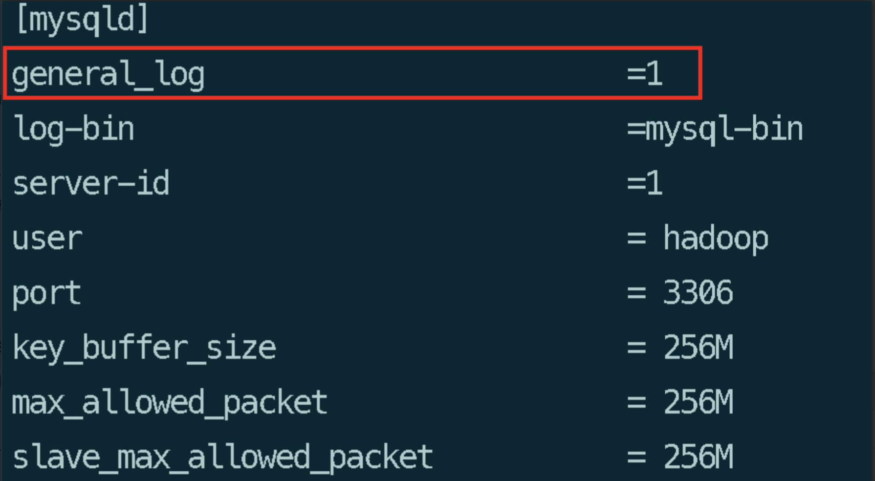 SET GLOBAL log_output = 'TABLE'; SET GLOBAL general_log = 'OFF'; //日志关闭