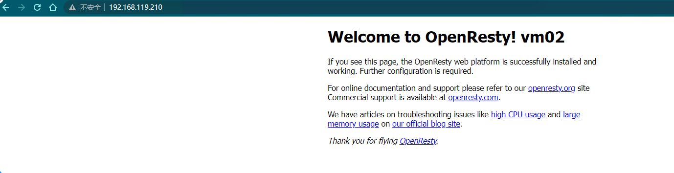 Apr 21 11:19:52 localhost Keepalived_vrrp[27599]: Sending gratuitous ARP on ens33 for 192.168.119.210刷新VIP网址,已经切换到vm02